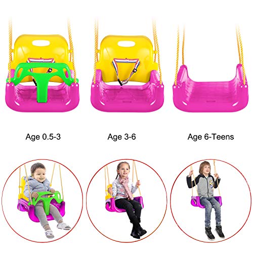 AIPINQI 3 in 1 Swing Seat, Outdoor Swing for Kids Safe Toddlers Swing Seat Tree Swing for Playground Indoor Outdoor Playing Swings for Children, Pink