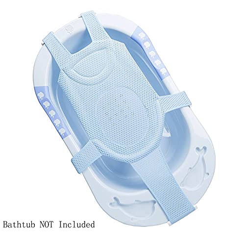 Baby Bathtub Mat Pad for Newborn Mesh Floating Bathing Tub Seat Baby Bath Pillow Infant Bathtub Support Cushion Net for Baby 0-18 M, 5 Belts, Blue