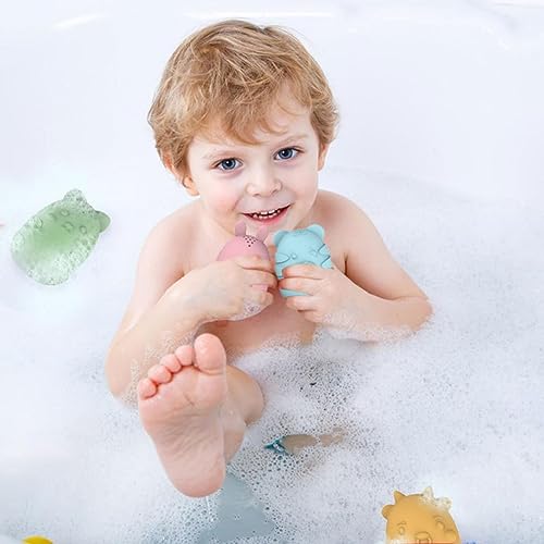 Baby Bath Toys for 1-3 Year Old Boys Girls, 4Pcs Toodlers Sensory Toys for Ages 1+ Year,Shower Toys for Babies 6-12 Months, Silicone Bath Toys for Toodlers 1-3 Year Floating Bathtub Water Toys