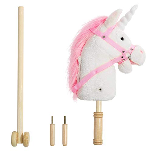 iBonny 36-inch White Hobby Horse with Good Grip Handles and Wheels Unicorn Plush Toy