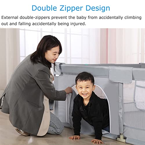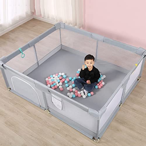 Playpen Grey Portable for Babies and Toddlers with Mat, Large Toddlers Playard for Twins, Boys & Girls, From 6 Months to 6 Years (Size : 150×180×65cm)