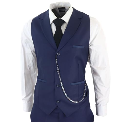 Complete 3-Piece Set: The suit includes a jacket, vest, trousers and pocket chain, providing a complete outfit for a polished and coordinated look.