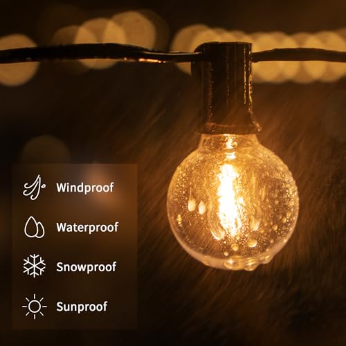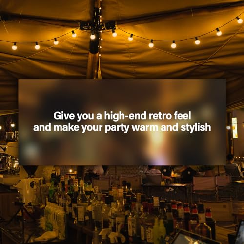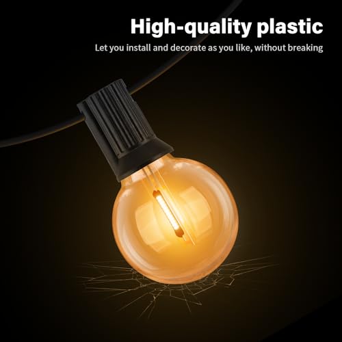 【Romantic and Dreamy Atmosphere】G40 outdoor string lights use high transmittance plastic bulbs instead of fragile glass bulbs. Safe and durable, keep your family away from danger. The outdoor light chains will emit soft yellow lights, creating a warm atmosphere. Perfectly decorate your garden, fence, balcony, tavern, pergola, tent, bar, dinner, birthday party, etc.