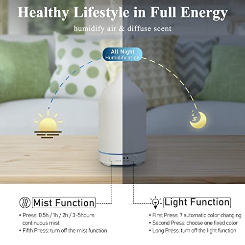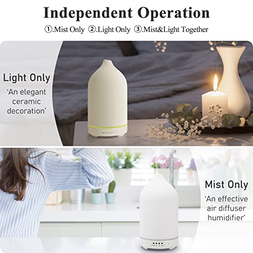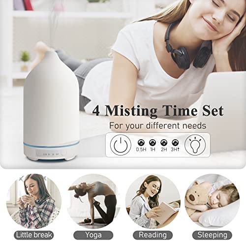 Ceramic Essential Oil Diffuser 100ml Electric Aromatherapy Air Mist Aroma Diffusers Ultrasonic Scent Fragrance Oil Diffuser Humidifier with Auto Shut Off 4 Timing Set 7 LED Lights for Home Office