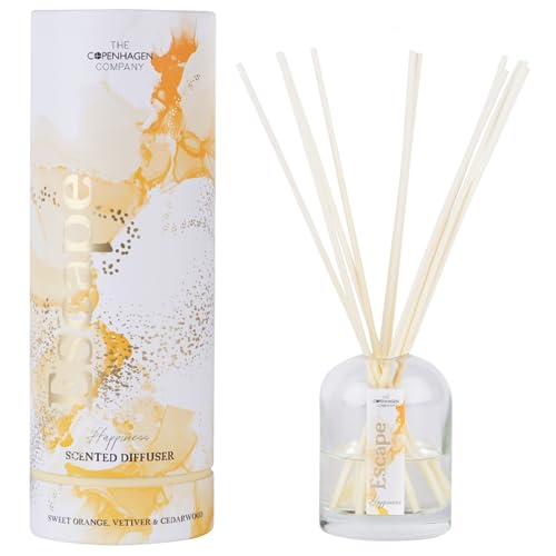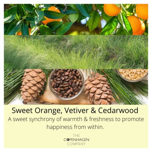 Luxury Reed Diffusers for Home | Aromatherapy Scented | 10 Natural Rattan Reeds | 10 Weeks Long Lasting Fragrance | The Copenhagen Company – Sweet Orange, Vetiver & Cedarwood (100ml)