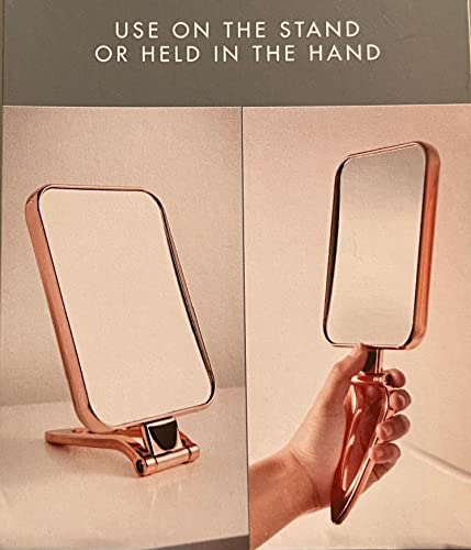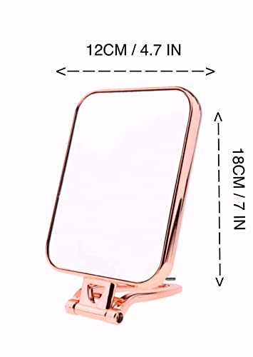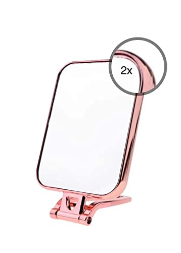 UK HOME BARGAINS Double Sided Makeup Mirror Free Standing Cosmetic Mirror Rectangular Fold Mirror 2 in 1 Flip Out Mirror 2x magnification (Rose Gold)