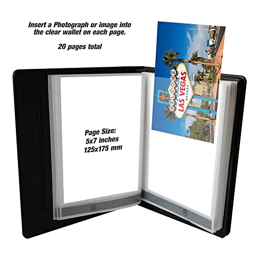 Each of the 20 pages will hold a single 5×7 inch photo in a clear pocket, (125x175mm). Each page has an individual Play/Pause button.