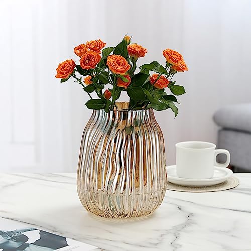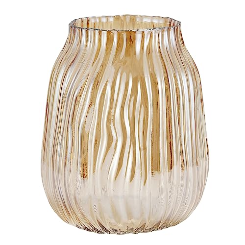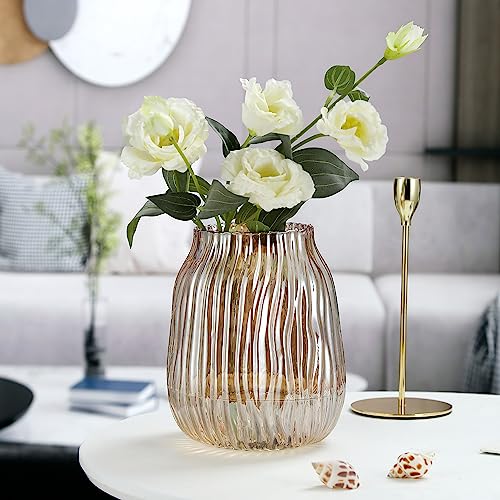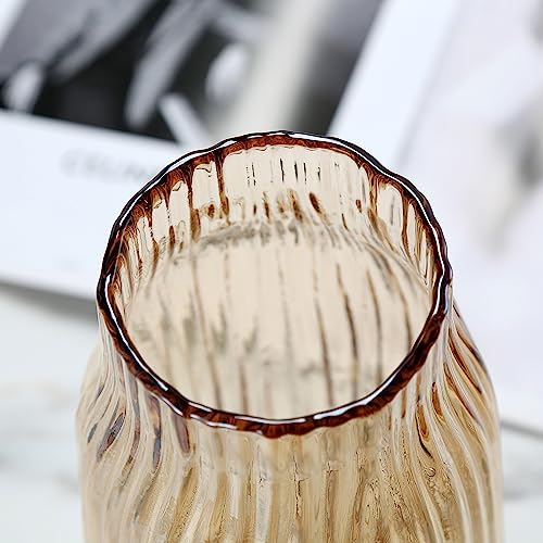 Large Amber Glass Vase for Flowers Ribbed Tall Gold Floor Vase 21cm Decorative Vases for Home Table Centerpieces Flowers Decor and Farmhouse(Brown 21cm)